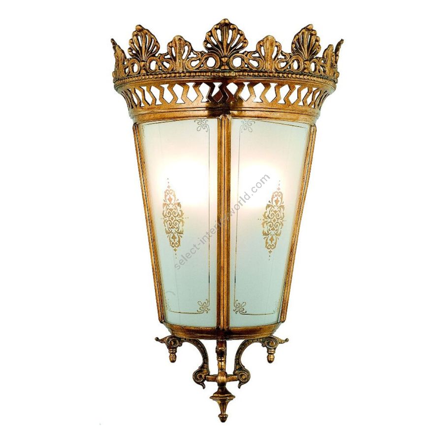 Wall lantern in cast brass with silk-screened glass.