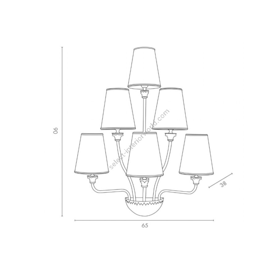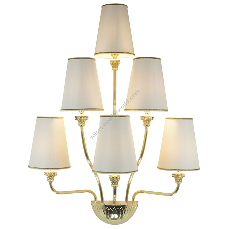 Wall lamp in brass with 6 lights. Fabric lampshades.