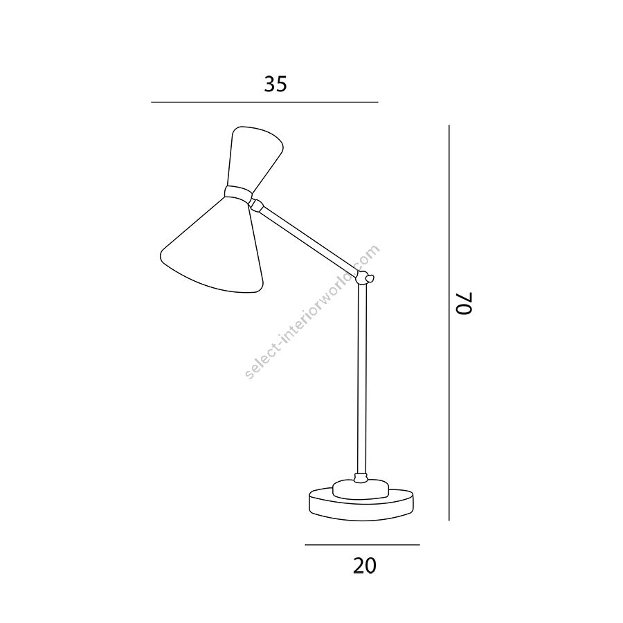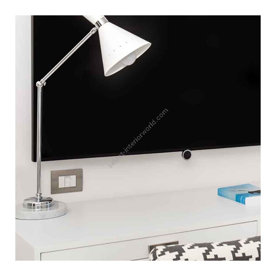 Table lamp double swinging arms in different finishing and painted metal shades. Base in marble.