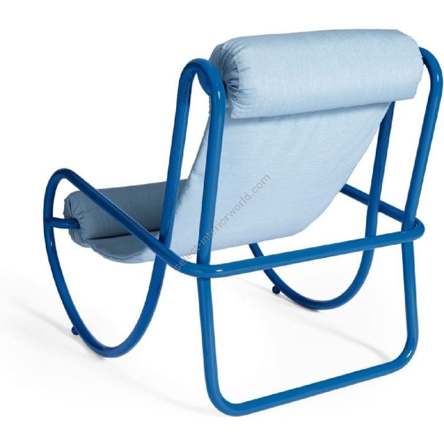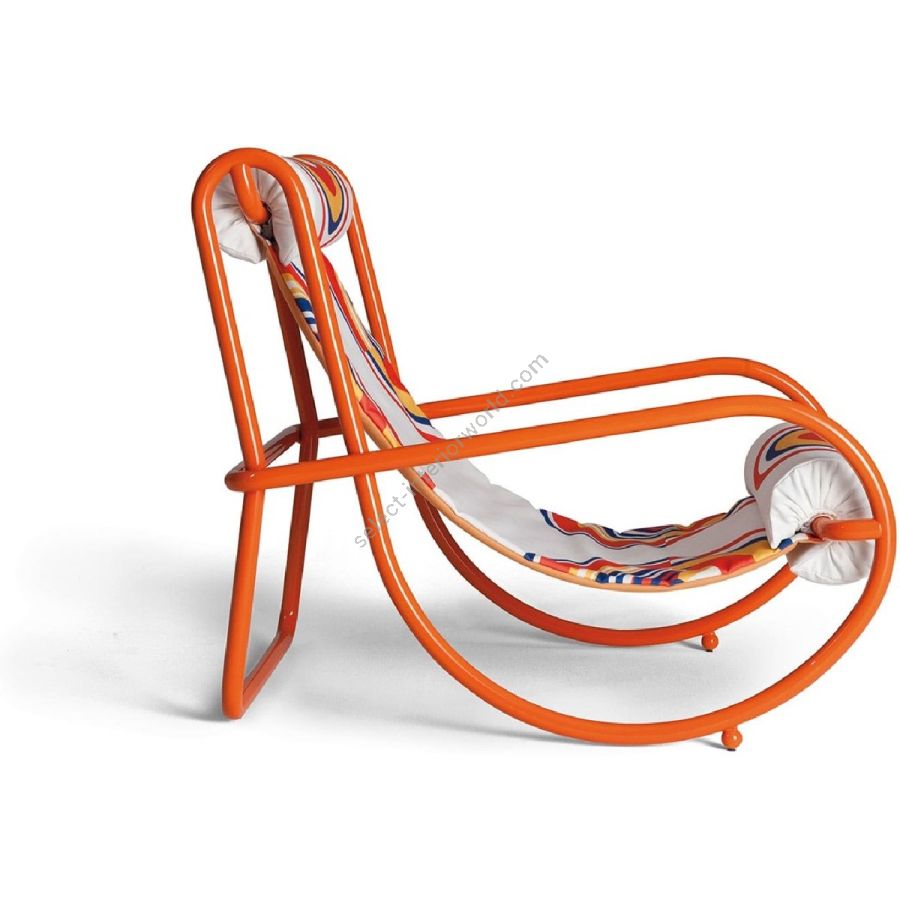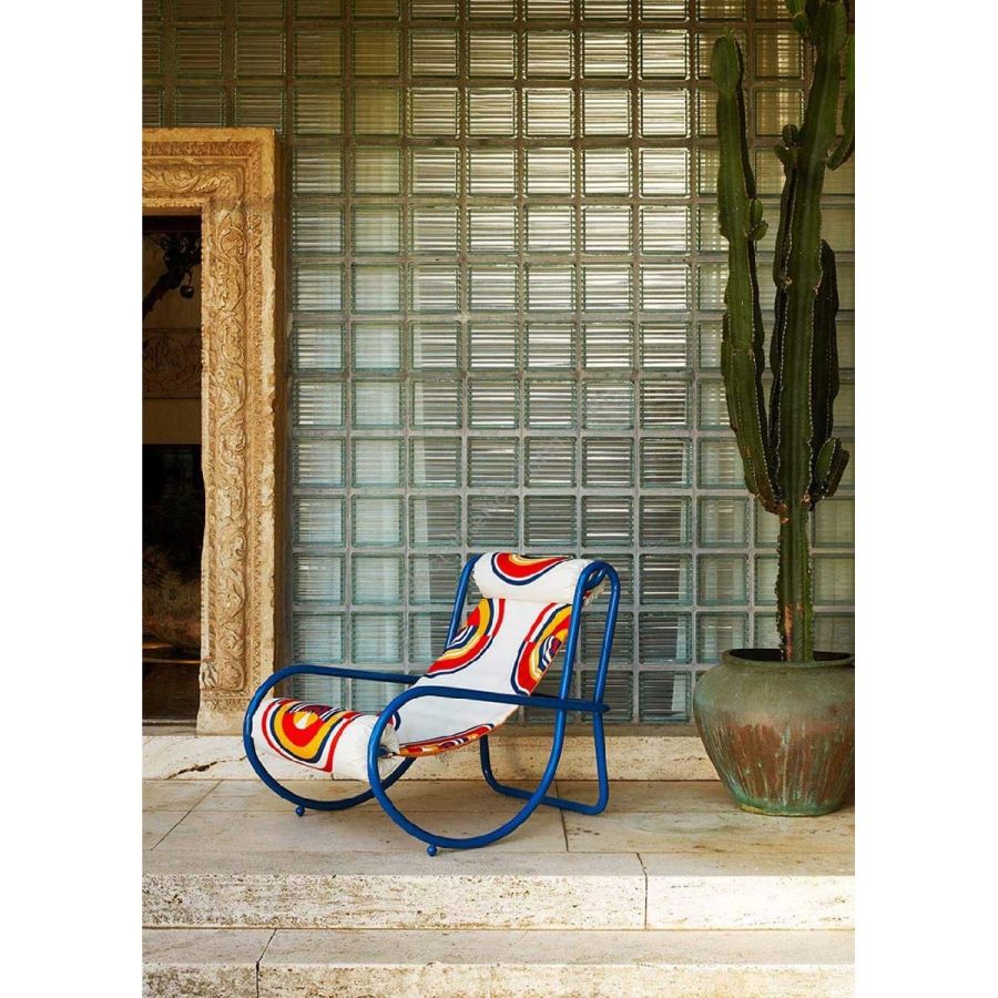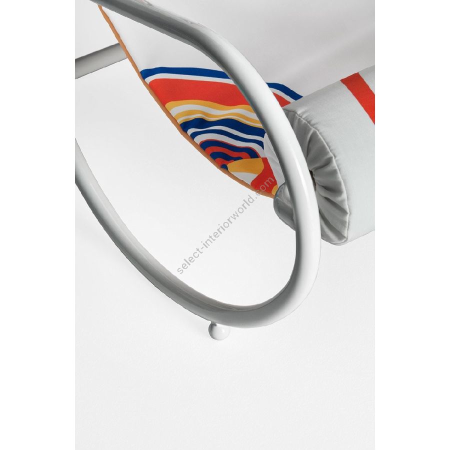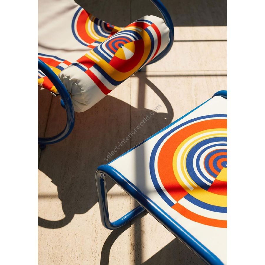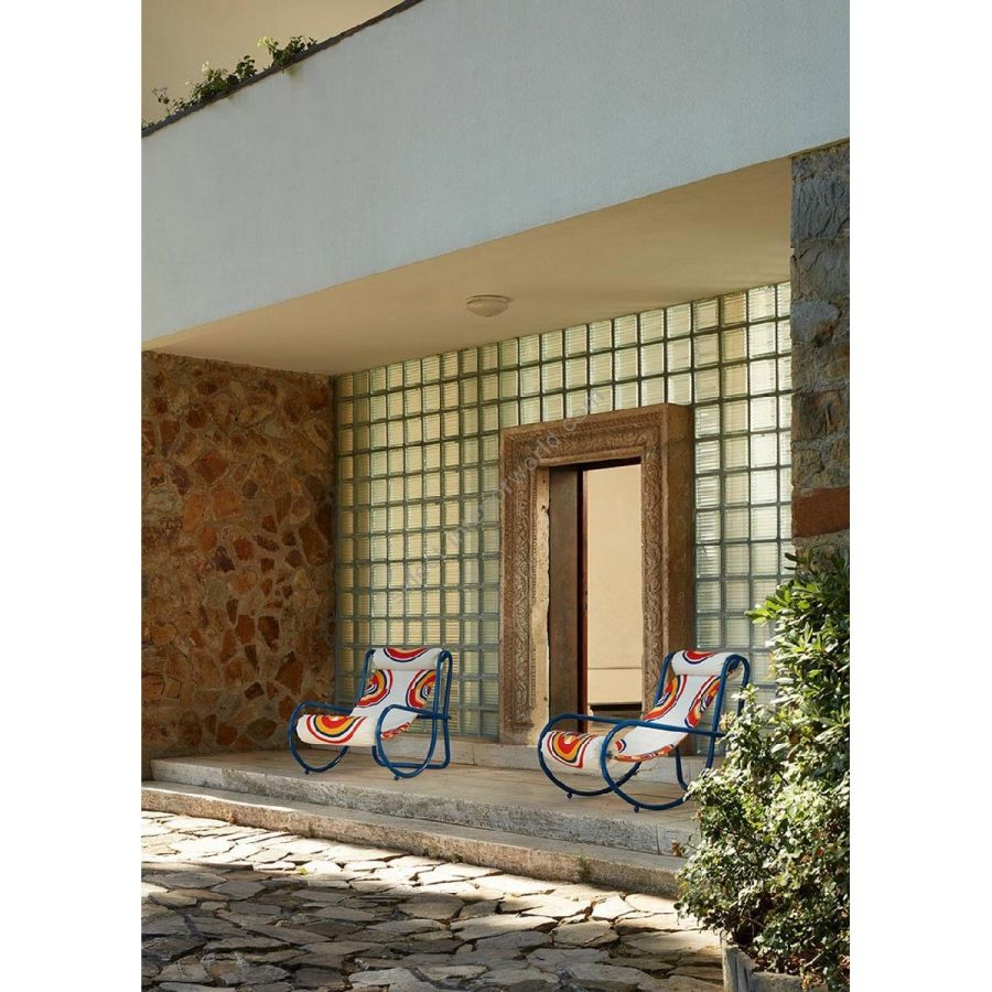 The Locus Solus Armchair is the re-edition of Gae Aulenti’s 1964 design. Steel tubulars trace fluid lines, meeting in a continuous armrest, while padded cushions in outdoor fabrics add comfort. Glossy finishes and playful geometry make this armchair a timeless icon of retro-inspired elegance.