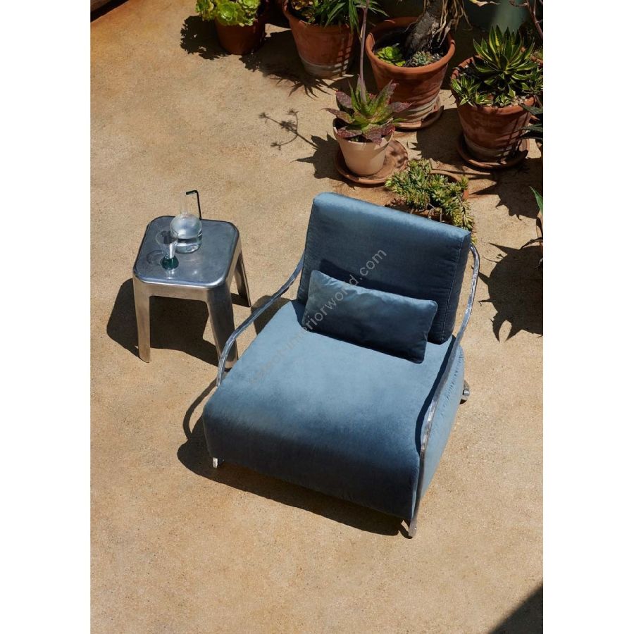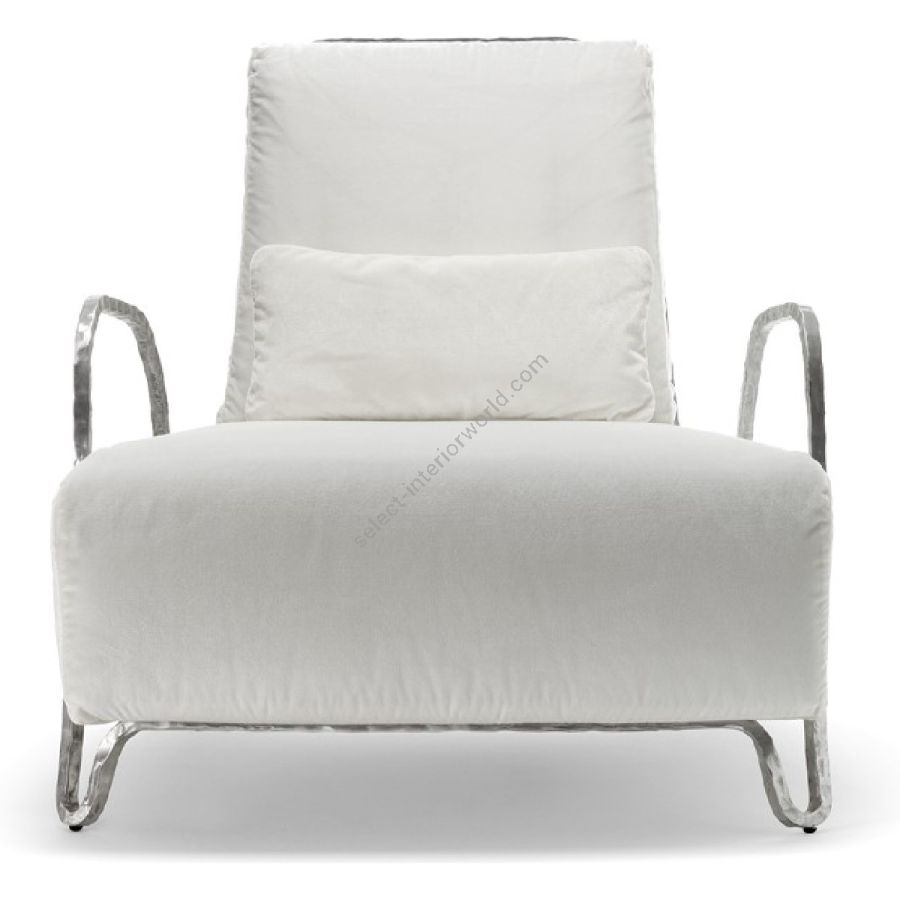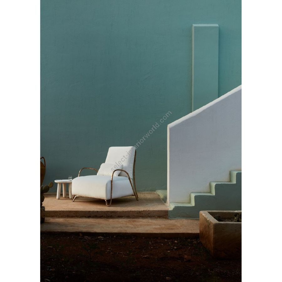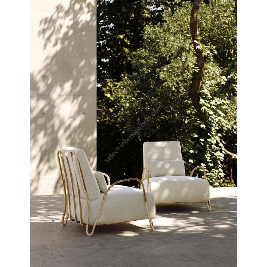 Realizzata in bronzo o in una lega di alluminio anticorodal, Moonlight Armchair è per sua natura adatta agli ambienti esterni. La straordinaria resistenza dei materiali ne garantisce la durata senza appesantire la struttura. L'alluminio anticorodal è usato nel campo dell'aeronautica e possiede un'elevata resistenza alla corrosione che lo rende inalterabile nel tempo. Nella versione bronzo, la superficie metallica muta con il passare degli anni, acquisendo una patina sempre più seducente, capace di conferire un aspetto unico.