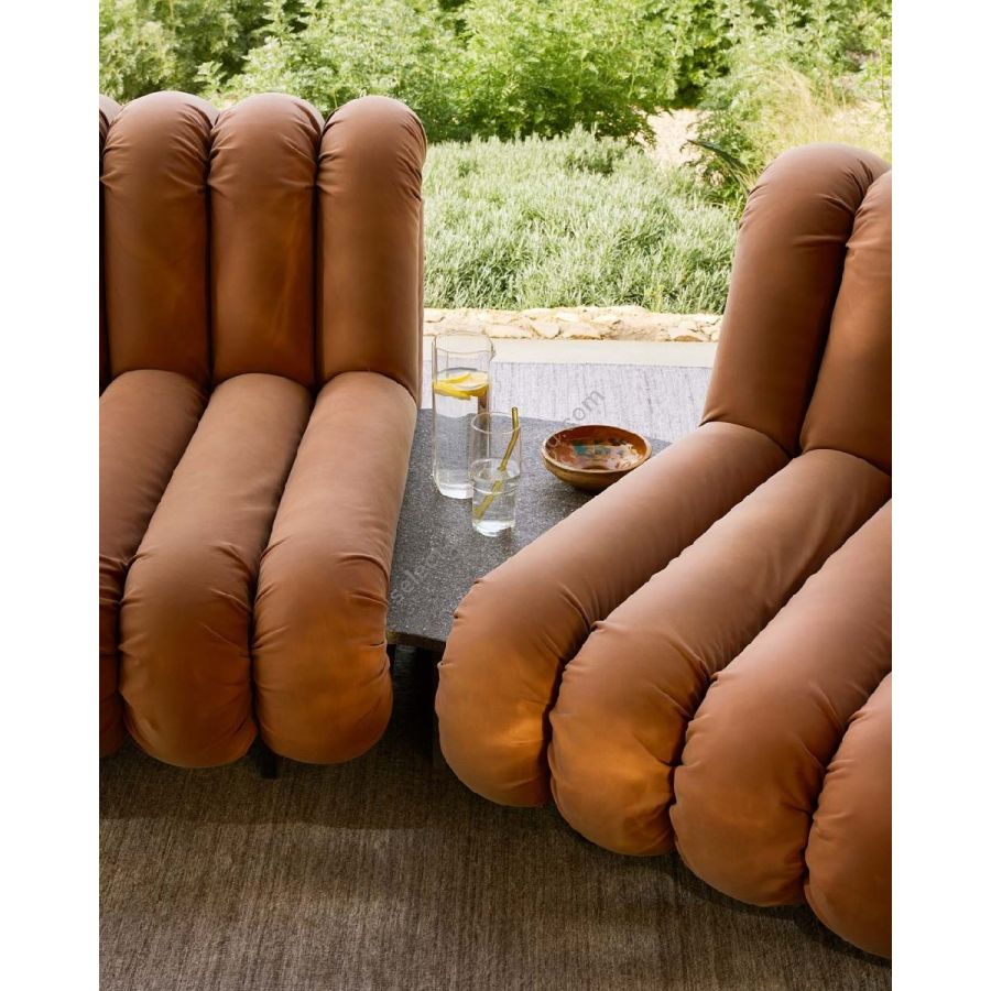 Bizzarra e domestica, geniale e accogliente, questa poltrona riecheggia le idee e le linee del design anni Settanta, presentandosi come un arredo ideale per aggiungere un tocco di carattere a qualsiasi zona outdoor.