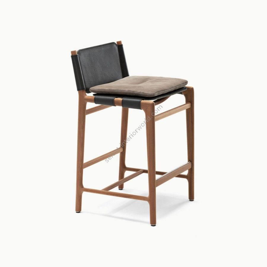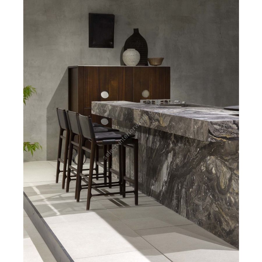Un legno nobile ed estremamente resistente: mogano Sapelli arricchisce Levante Stool con le sue pregiate venature. La finitura, a scelta tra Mogano opaco, Barrique e Lucido Mediterraneo, è il dettaglio che omaggia la maestria dell’artigianato italiano.