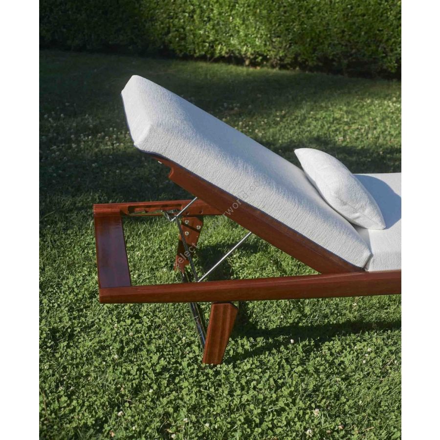 Unione tra eleganza nautica e comfort ergonomico. Realizzato con una struttura in mogano massello e dettagli in acciaio inox, si distingue per le linee pulite e le proporzioni raffinate. Un elemento senza tempo pensato per il relax all’aperto, ispirato all’estetica e alla maestria degli yacht classici.