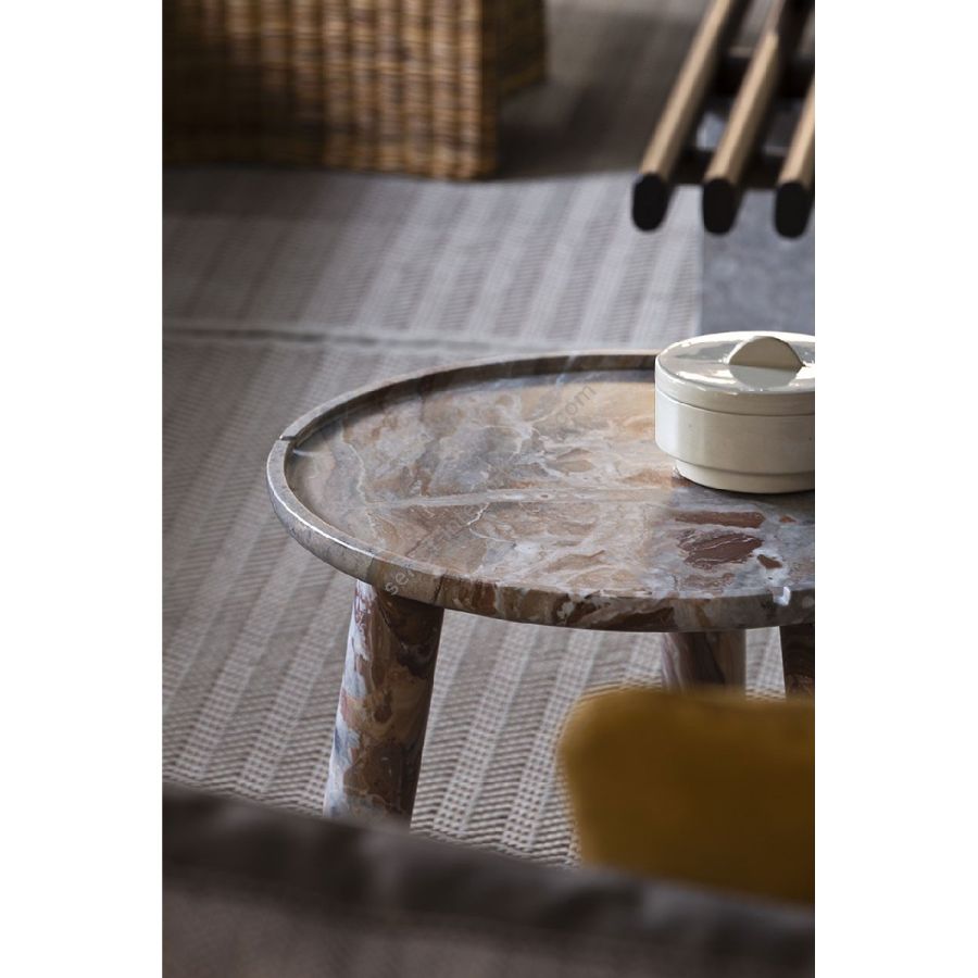 Il piano, incorniciato da un sottile dettaglio marmoreo, ne circoscrive il profilo. Un particolare semplice e insieme raffinato, in grado di donare a Stone Round Coffee Table grazia ed eleganza.