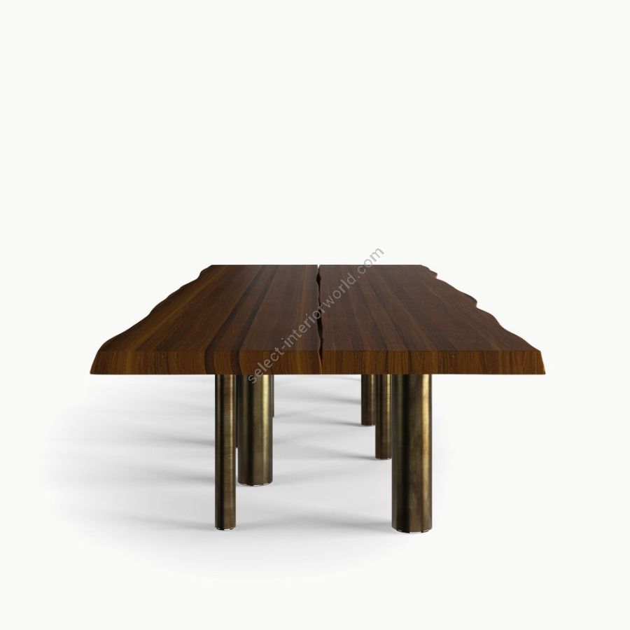 Il piano è diviso in due sezioni congiunte tra loro da connettori in ottone brunito. Un dettaglio esclusivo che regala a 10th Joint Dining Table una firma di stile.