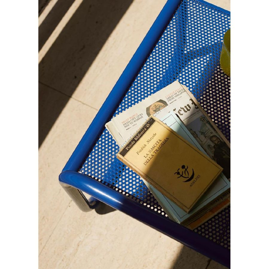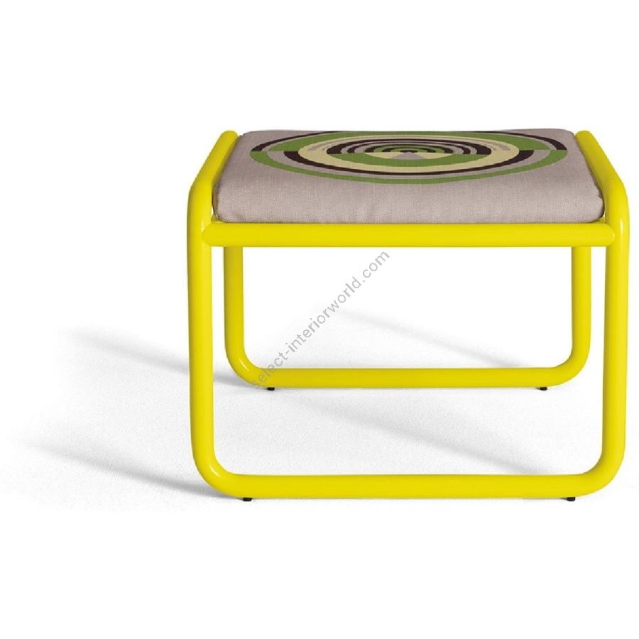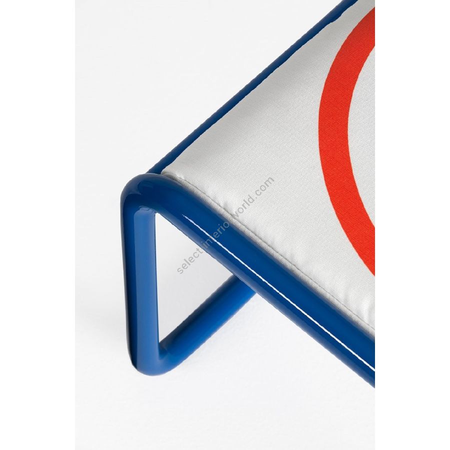 Linee sottili e forme smussate compongono il design di Locus Solus Pouf. Il tubolare in acciaio verniciato in vari colori, incontra il piano retato adornato dai morbidi cuscini realizzati a mano. Il rivestimento in tessuto stampato con gli esclusivi artwork “Locus Solus”, o disponibile in tutto il campionario tessuti di Exteta, regala un immancabile tocco di stile.