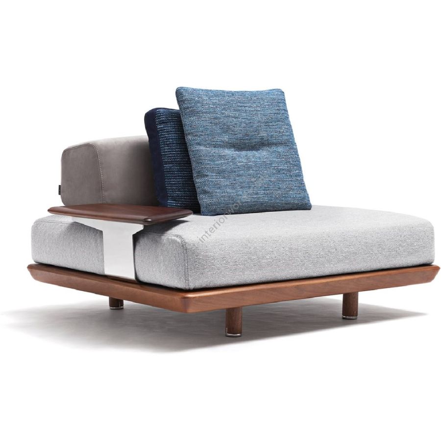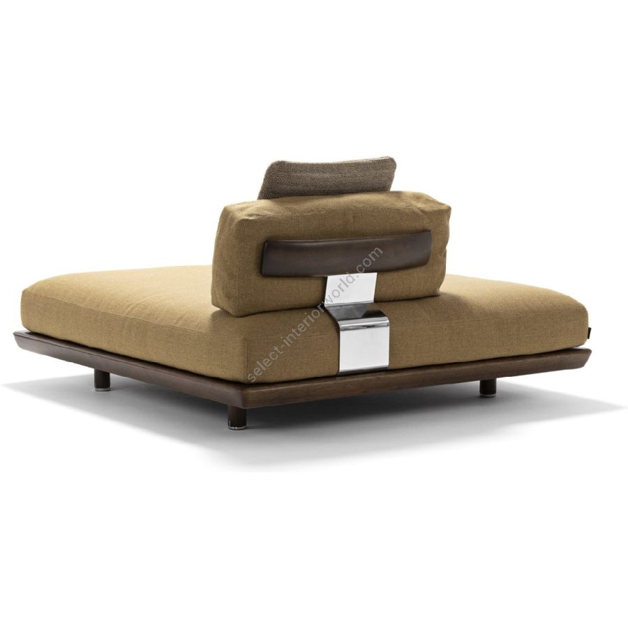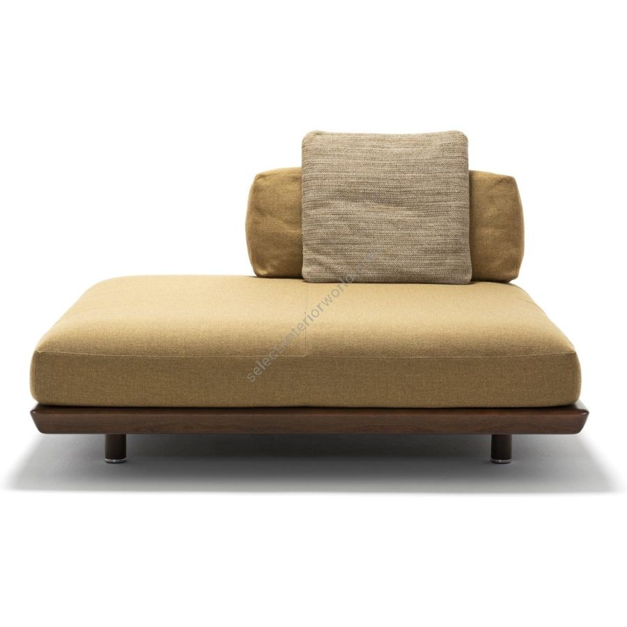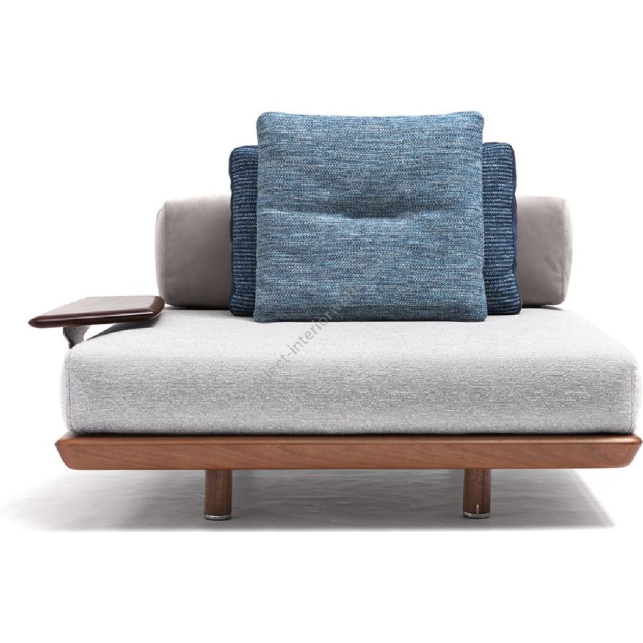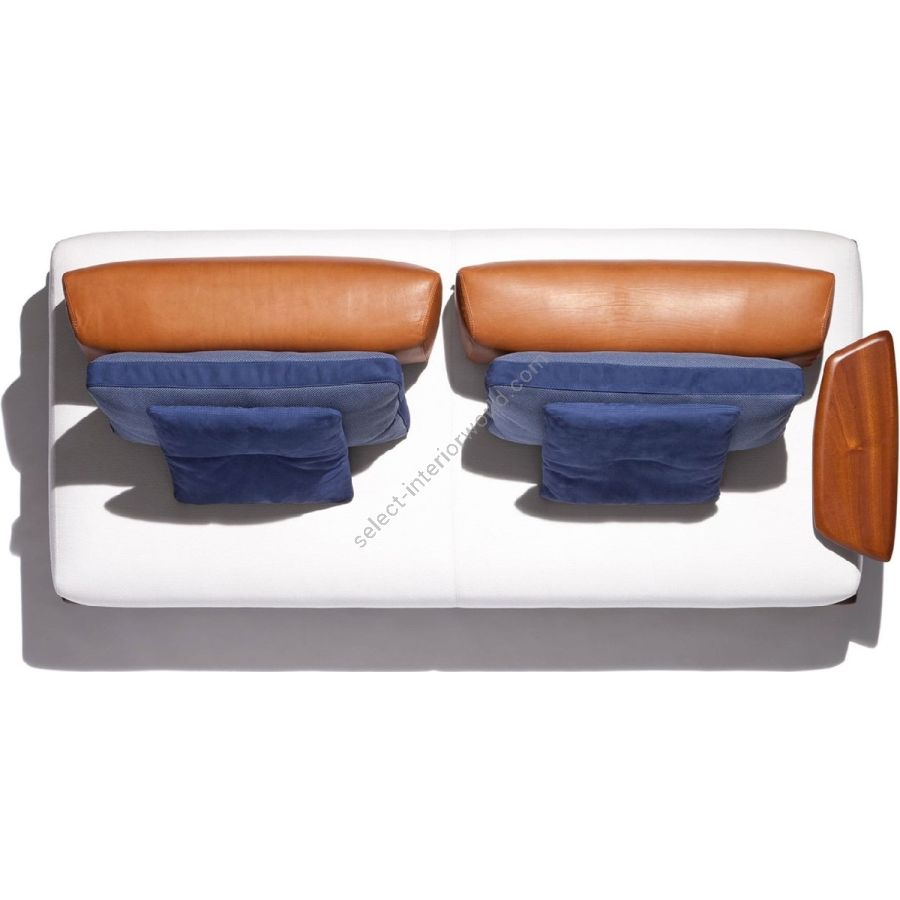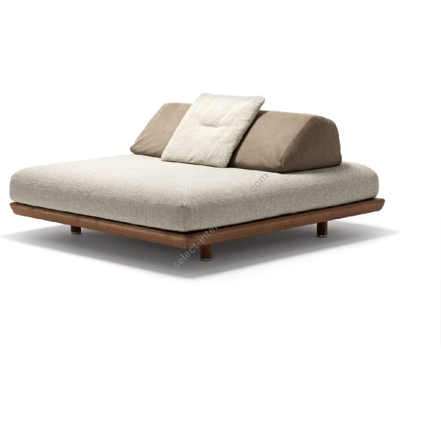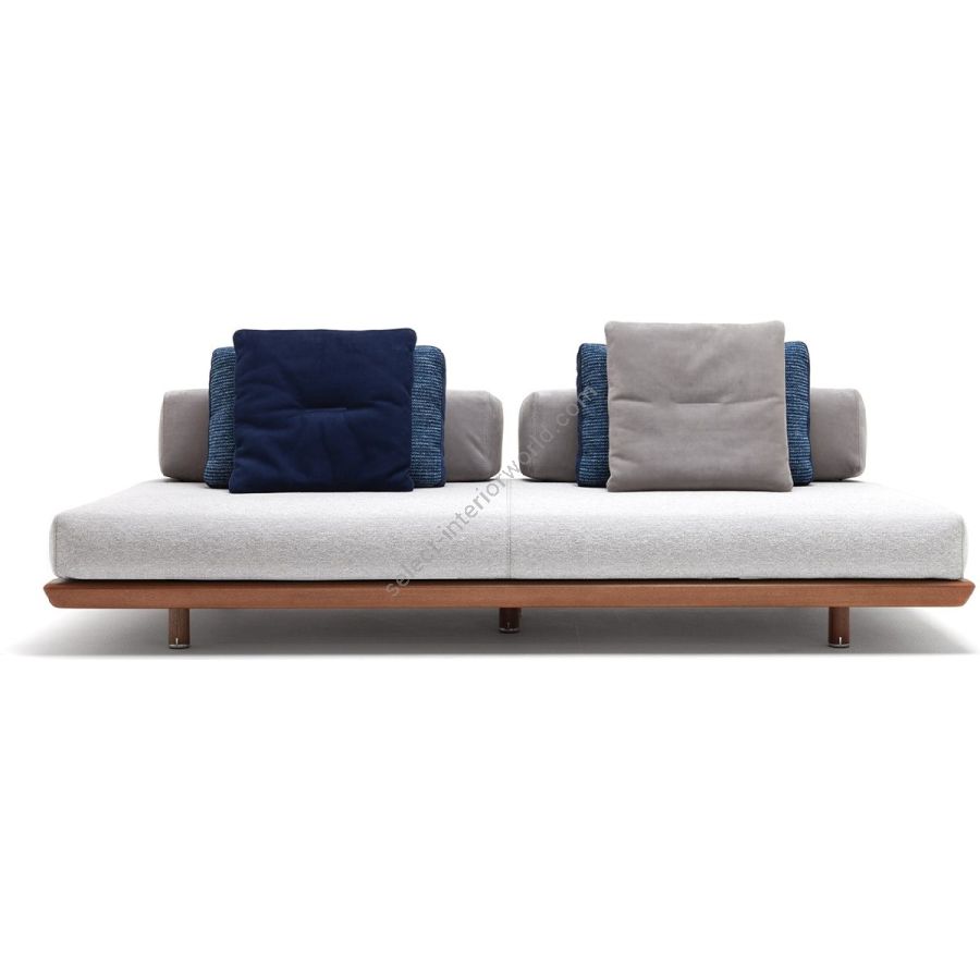 Mentre gli accessori, così come la struttura, sono in mogano, i profili morbidi dei cuscini si intrecciano perfettamente a quelli della seduta. Per immergersi in un comfort di puro design.