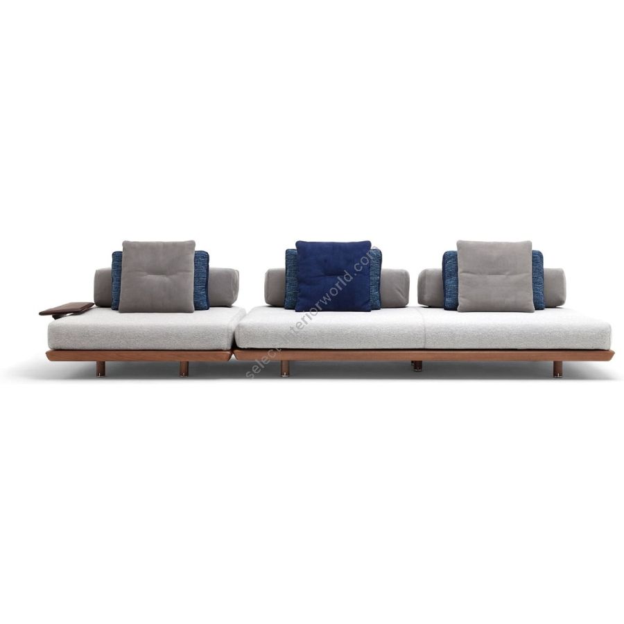 I moduli possono essere giustapposti tra loro, articolando il sofà secondo i propri ambienti. È possibile sostituire i moduli con altri dalla stessa profondità e aggiungere elementi, come pouf e isole, dando vita a composizioni angolari e nuovi profili outdoor. Così come il paesaggio muta secondo le stagioni, i moduli di Caprera Sofa permettono di trasformare gli ambienti, disegnando gli spazi con un design e un comfort senza tempo.