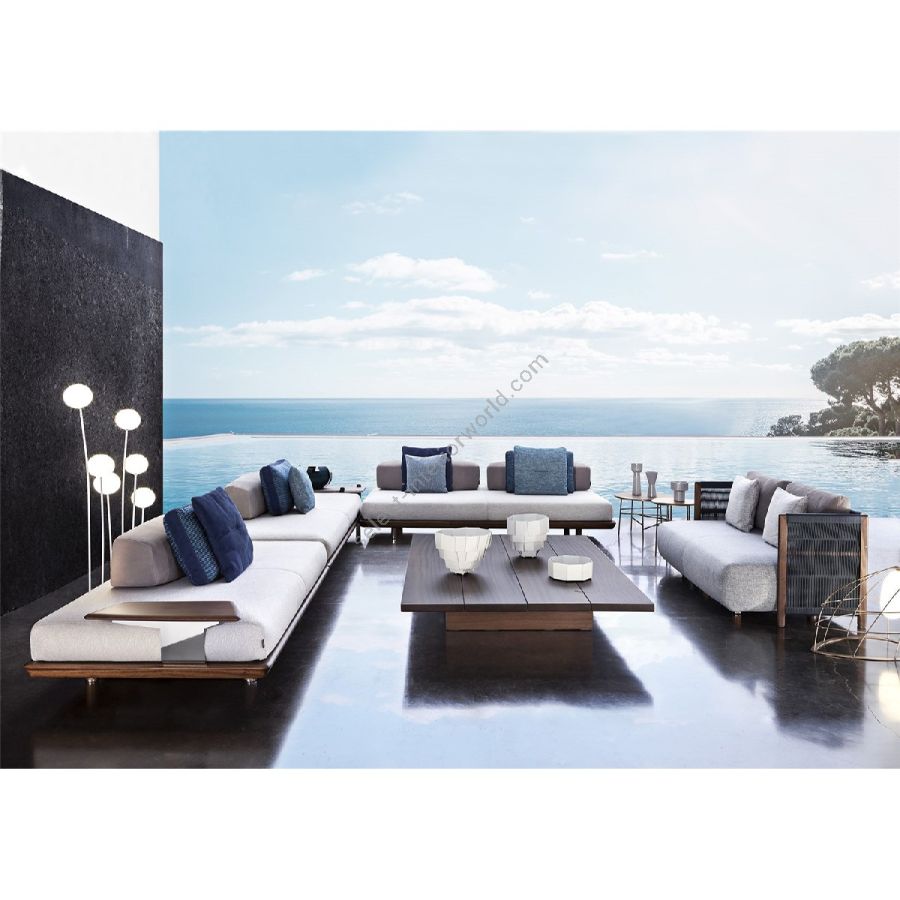 Vivere il divano come fosse un'isola su cui rilassarsi: gli schienali possono essere traslati e ruotati in più direzioni, permettendo di sperimentare l’outdoor in modo informale e personale.