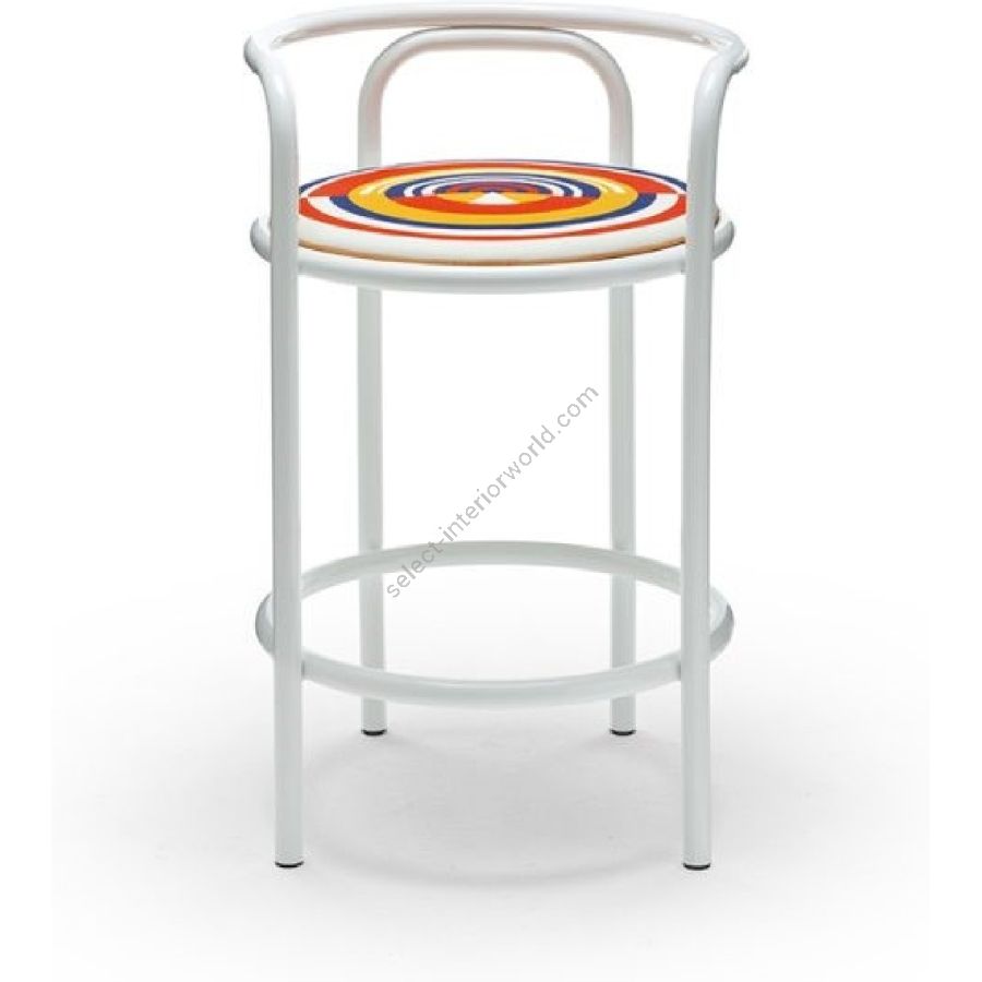 Il telaio di Locus Solus Stool è realizzato in tubolari in acciaio inossidabile verniciati. La struttura, leggera e colorata, ricorda un cilindro disegno nell’aria. Per uno stile dinamico e d’impatto.