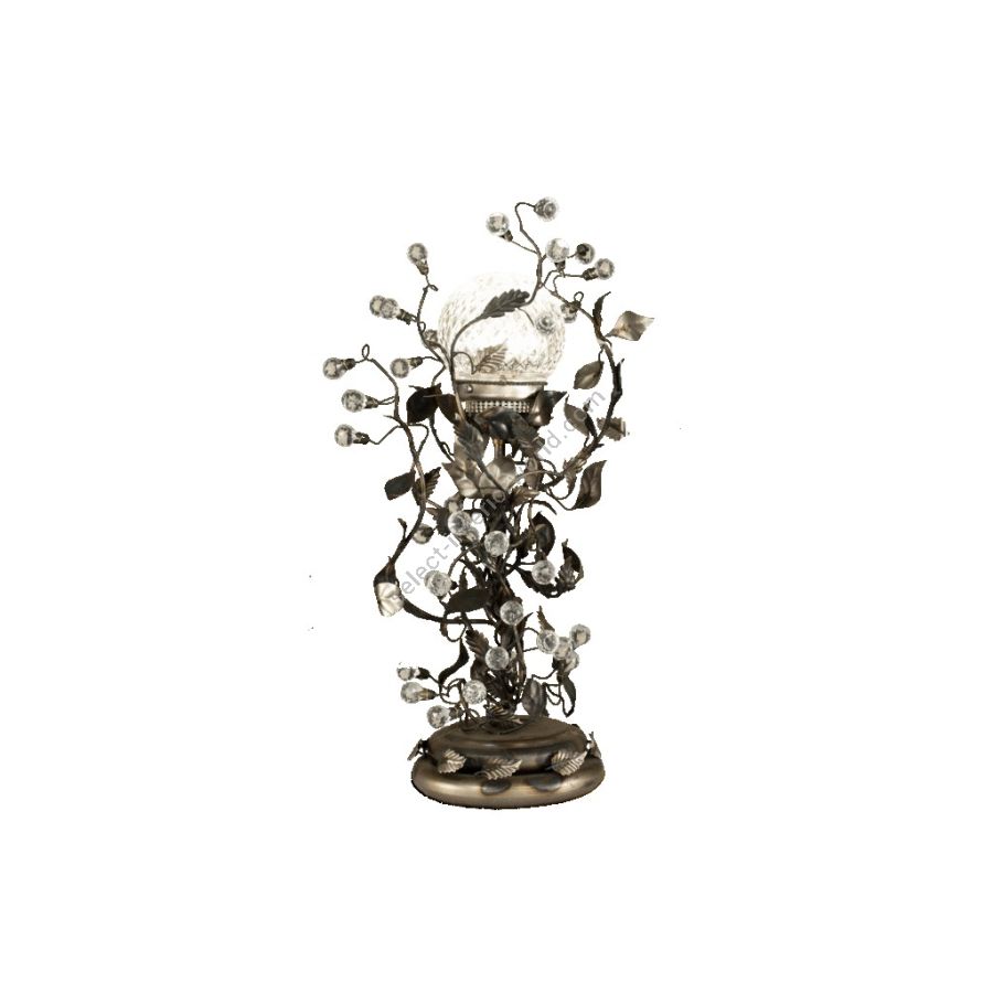 1 light table lamp in wrought iron with clear bohemian crystal, crystal round lampshades