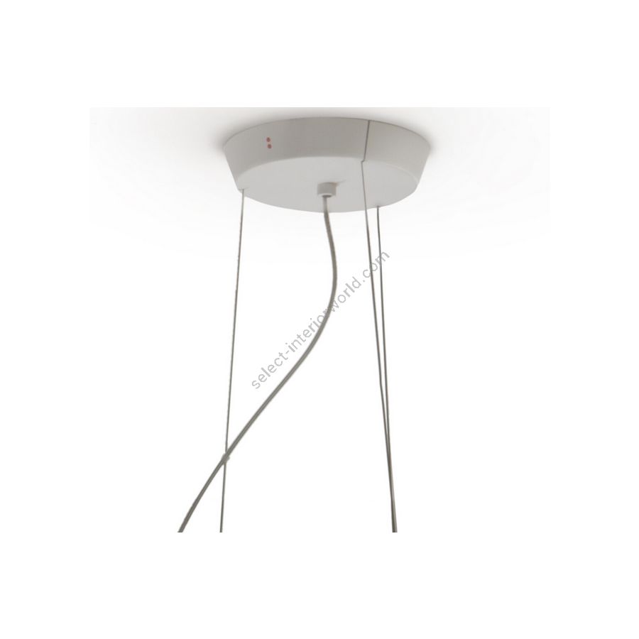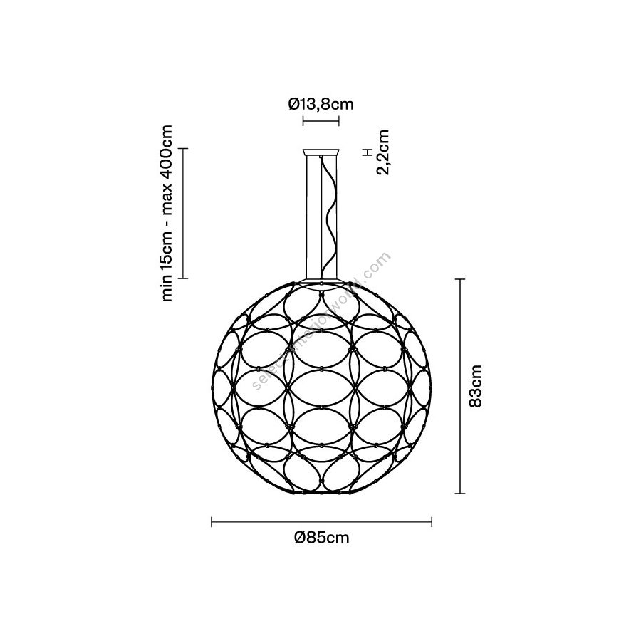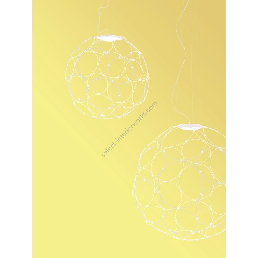 The collection consists of hanging lamps for indoor use, available in two sizes, both made up of 32 rings of varying diameter that are joined together to form a spherical shape. There are also two available finishes: polished white or anthracite grey. The choice of light source inside the metallic structure depends on personal tastes and needs. The lamp runs on mains power and is suitable for use with LED bulbs.