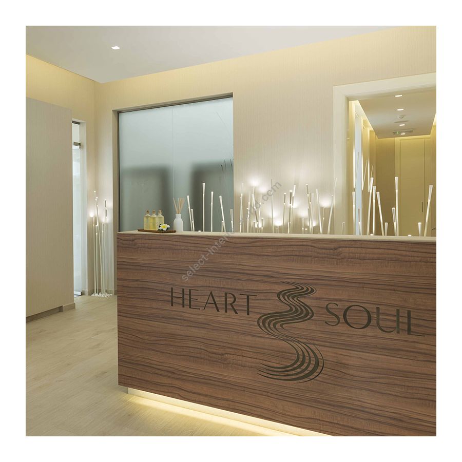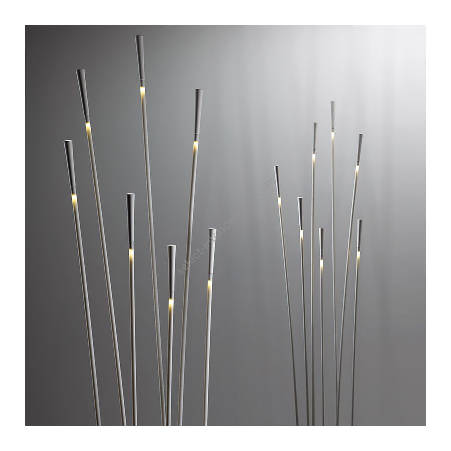 The Giunco floor lamp is a sophisticated furnishing accessory with an elegant design. It uses LED technology and is of great impact thanks to flexible diffusers that create very suggestive light effects. The floor lamp can be placed in the office, in the bedroom or living room.
