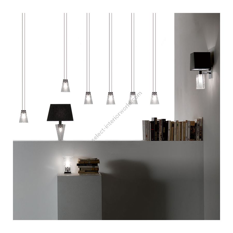 The Vicky table lamp has a very refined and classic design but is suitable for all types of environments. The light creates unique and suggestive light effects on the setting through the glass and the black and white fabric lampshade. It is perfect for the bedside table in the bedroom or the living room of the home.