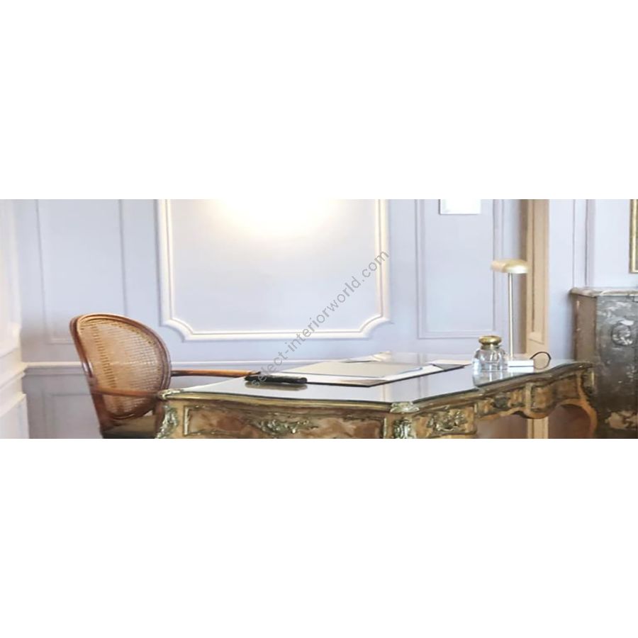 Evoking the charm of traditional reading desks in notaries' and lawyers’ offices at the dawn of electrification, The Book table lamp is a refined tribute to timeless design and purposeful lighting. Ideal for office or reading spaces, it blends vintage inspiration with modern elegance.