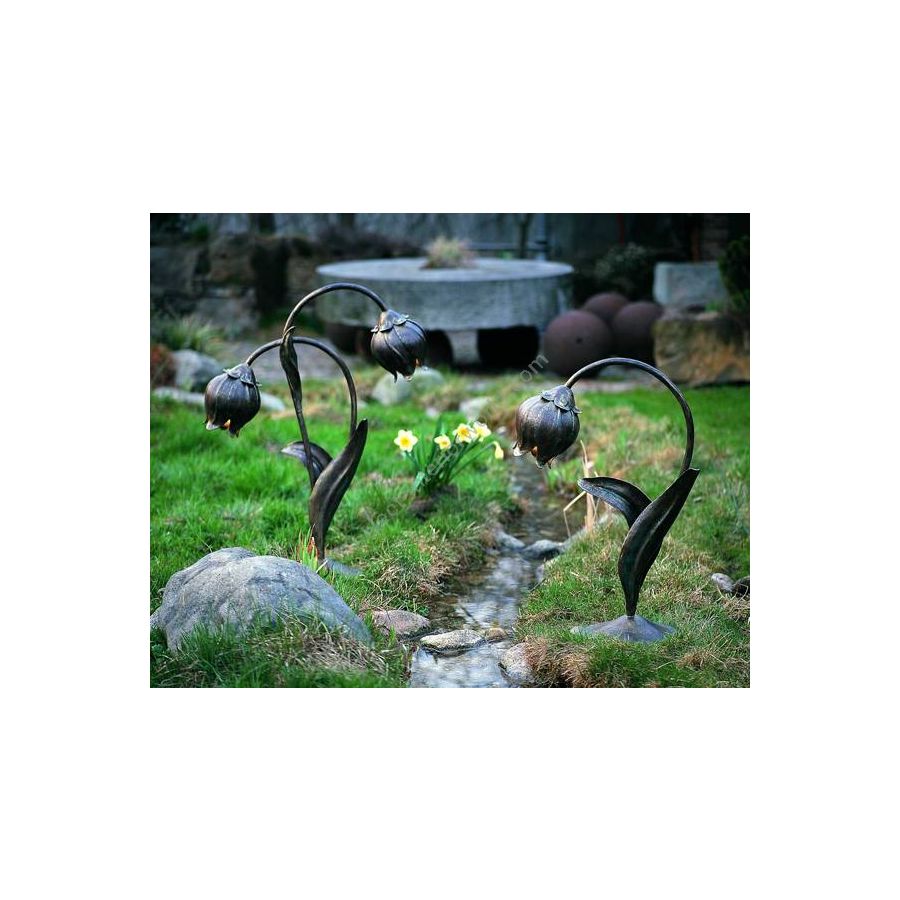 This unique post lamp by Robers (Germany) can become a true statement in the garden attracting the whole attention and at the same time playing its main role - to give light and thus, provide for security. Its design repeats a beautiful flower from the base through the delicately bent stem and petals up to the buds barely open. The buds serve as a shade. They are placed on different height due to the size of the stems enlightening the space in opposite directions and on the different heights. The flower-like post lamp is handcrafted of wrought iron, sustainable and water-resistant.