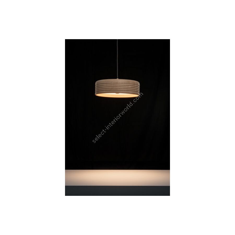 WOOD is a natural suspension lamp spreading warm and cozy vibes. The minimalistic cylindrical shape is enriched by symmetric ripples, highlighting the artisan turning process. Available in oak (raw), American walnut (oiled), and ash (stained black), WOOD is a perfect blend of Scandinavian clarity and organic charm. Defined by the individual grain and annual rings, each piece is as unique as a fingerprint. And the ecological footprint is close to zero: Formagenda plants a tree for each WOOD which is sold.