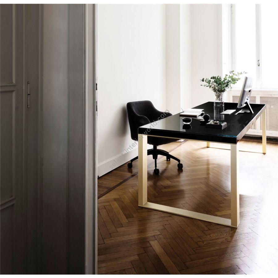 The top is available in gloss or mat lacquered, gloss or mat makassar ebony, clay/natural gloss erable, gloss albin wood veneered. Base in metal in gloss brass, gloss chrome, bronze, satin brass, pewter or cloudy bronze.