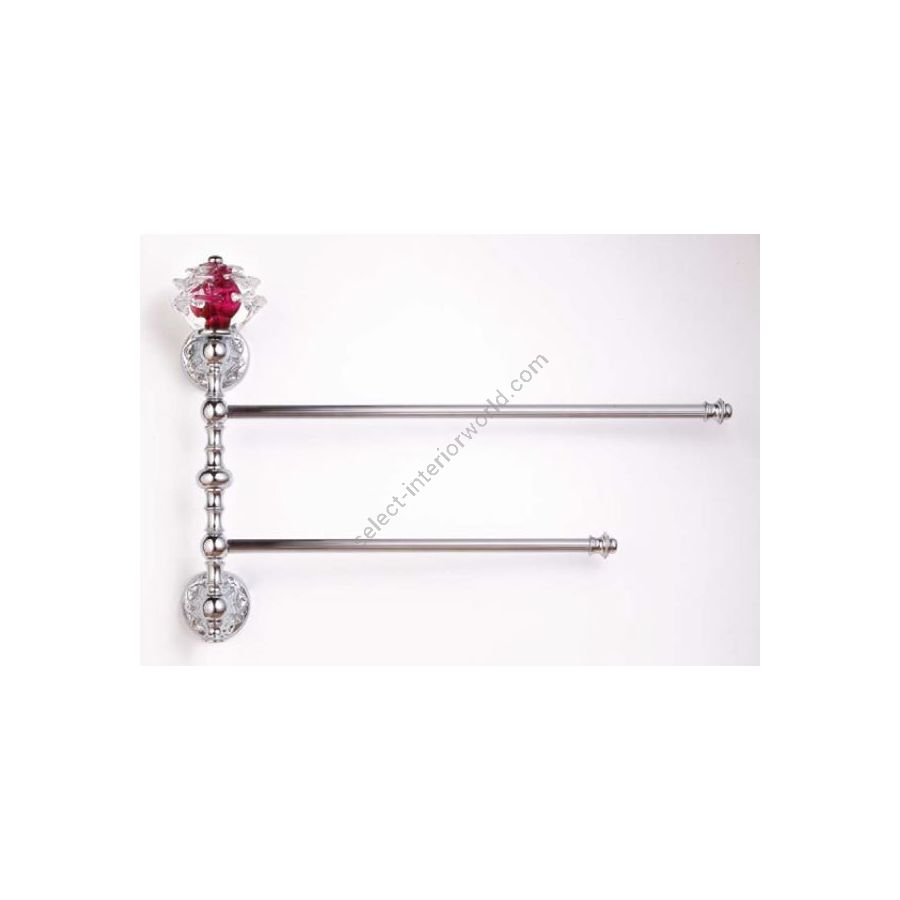 Double towel holder in chrome brass with italian crystal rose clamped by hand. Functional elements that create an extremely elegant, welcoming and high-value bathroom.