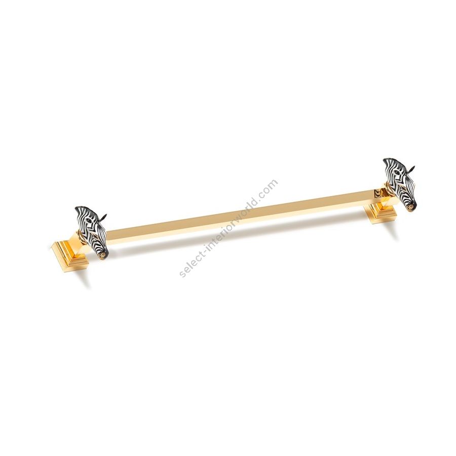 Towel holder in gold 24k with micro casting of enameled brass zebra. Functional elements that create an extremely elegant, welcoming and high-value bathroom.
