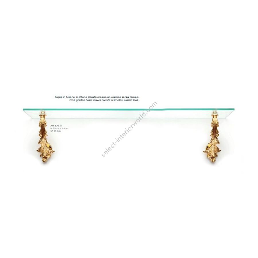 Glass shelf with casting brass leaves supports. Functional elements that create an extremely elegant, welcoming and high-value bathroom.