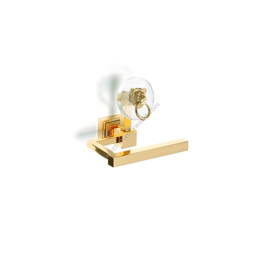Toilet paper holder in polished gold with casting brass Lion and glass medallion. Functional elements that create an extremely elegant, welcoming and high-value bathroom.