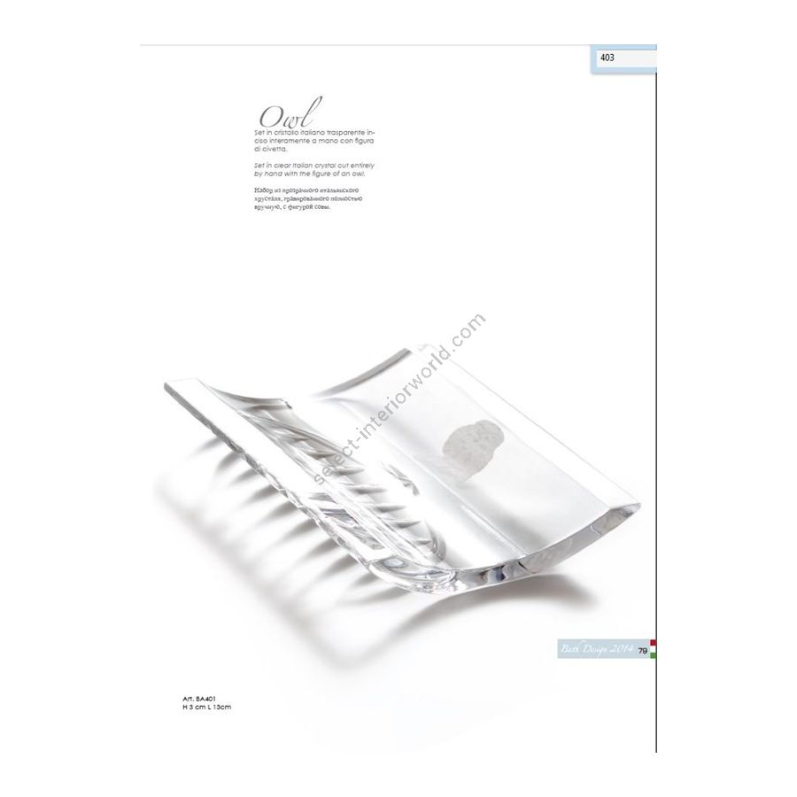Italian Crystal soap dishes with hand-engraved owl figure. Functional elements that create an extremely elegant, welcoming and high-value bathroom.