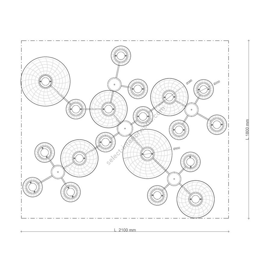 Bulbs: 19 x GX53| Dimensions (HxWxD): | cm: 35.5x210x180 / inches: 13.98"x82.68"x70.87" |
