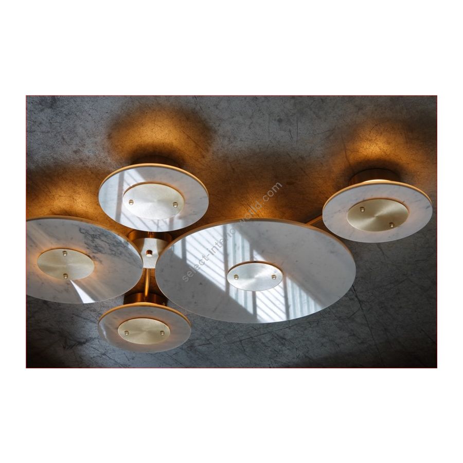 Ceiling or Wall Lamp with single Carrara Marble discs. Lighting item that diffuses the light with great effect in the surrounding environement creating a warm and welcoming atmosphere.
