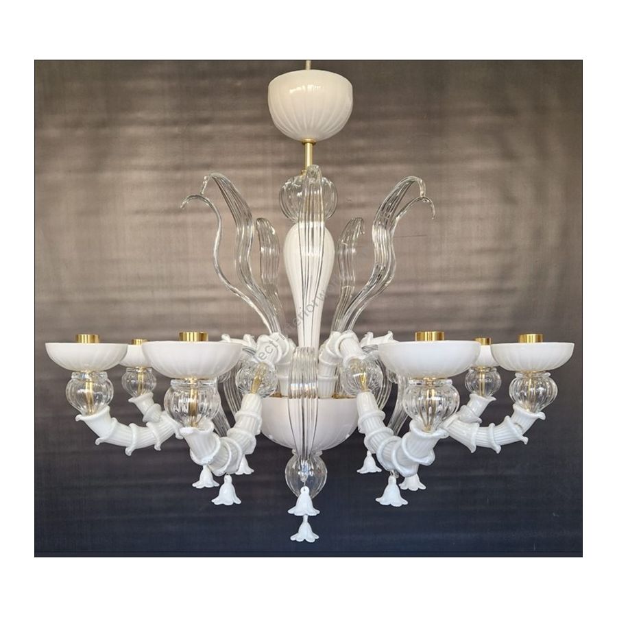 Rezzonico Murano Glass chandelier White and trasparent color. Lighting item that diffuses the light with great effect in the surrounding environement creating a warm and welcoming atmosphere.