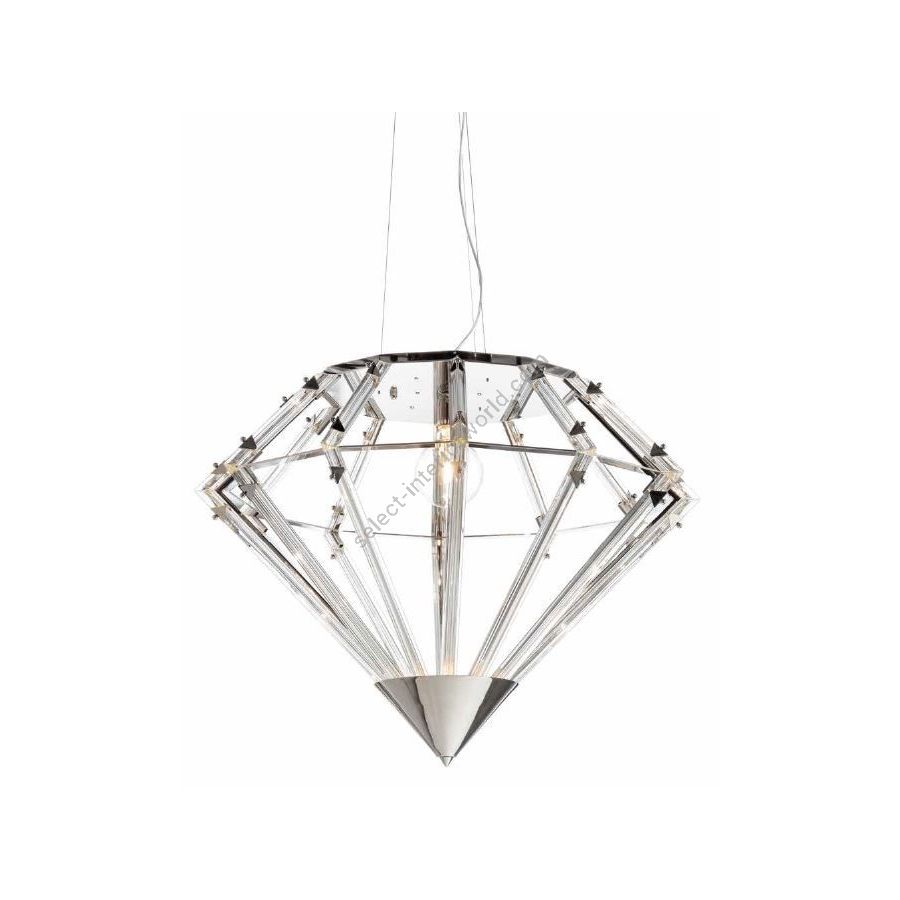 Chandelier "Diamante" with trihedrons. Lighting item that diffuses the light with great effect in the surrounding environement creating a warm and welcoming atmosphere.