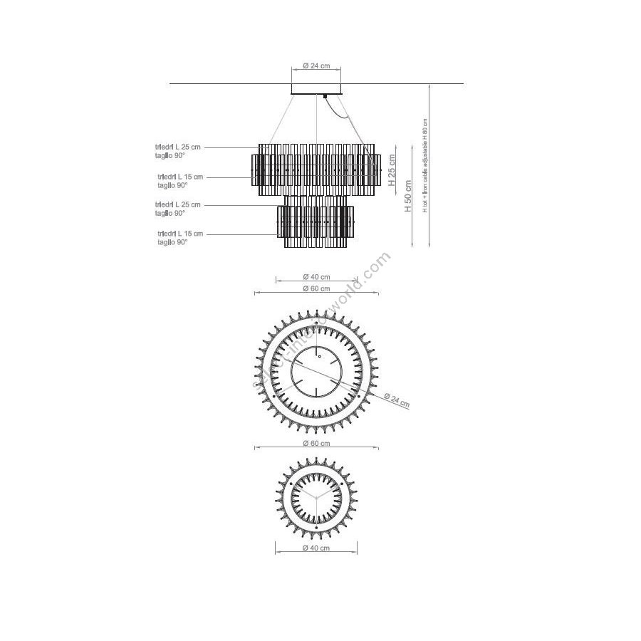 | Size | D. 60 cm x H 50 cm (+ Steel cable ajustable 50 cm); Kg 60 |