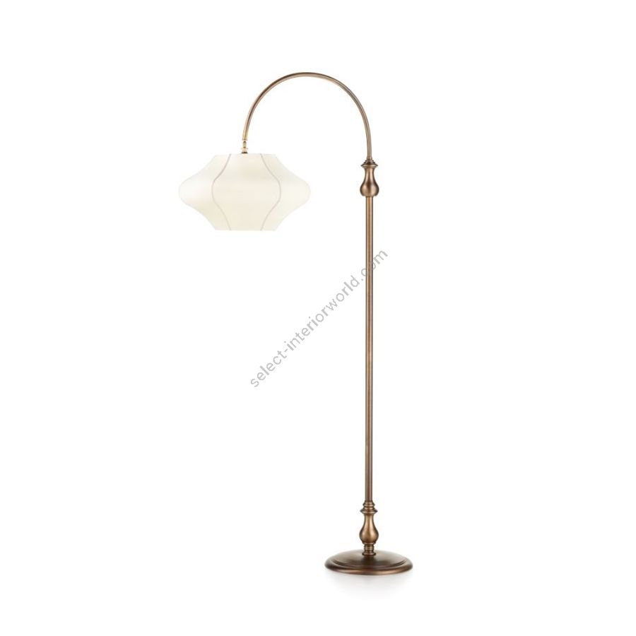 Elegant and timeless floor lamp, crafted in metal with a hand-brushed burnished finish. The arched arm supports a refined lampshade in double ivory silk fabric, which diffuses a soft and enveloping light. Ideal for living rooms, bedrooms, or reading corners, it combines functionality and classic-contemporary style with a touch of exclusive craftsmanship.