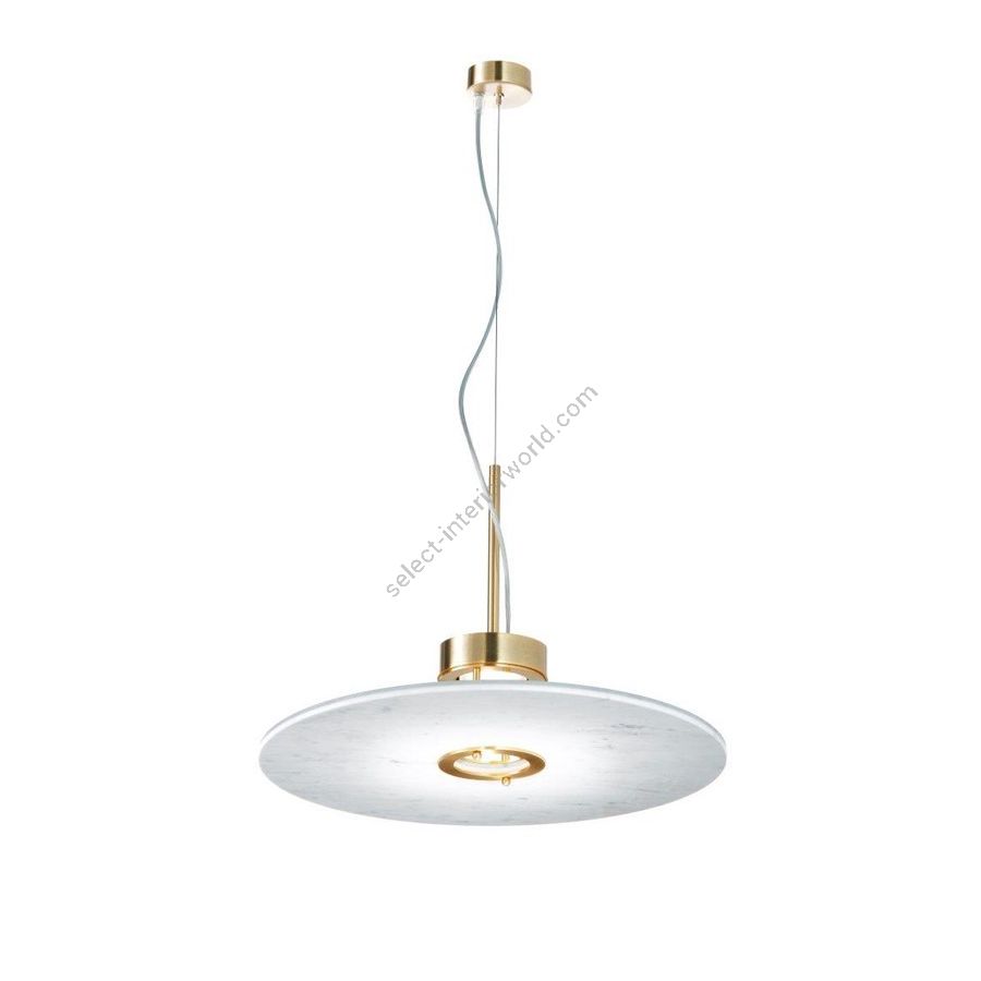 MARBLE HAT Chandelier with single horizontal marble disc. Lighting item that diffuses the light with great effect in the surrounding environement creating a warm and welcoming atmosphere.