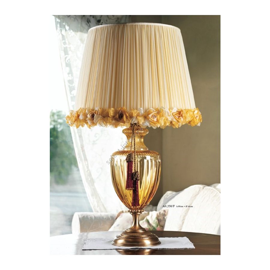 Crystal Table lamp in Ambra color, complete with lampshade. Tassel N1 red/gold not included in the price. Lighting item that diffuses the light with great effect in the surrounding environement creating a warm and welcoming atmosphere.