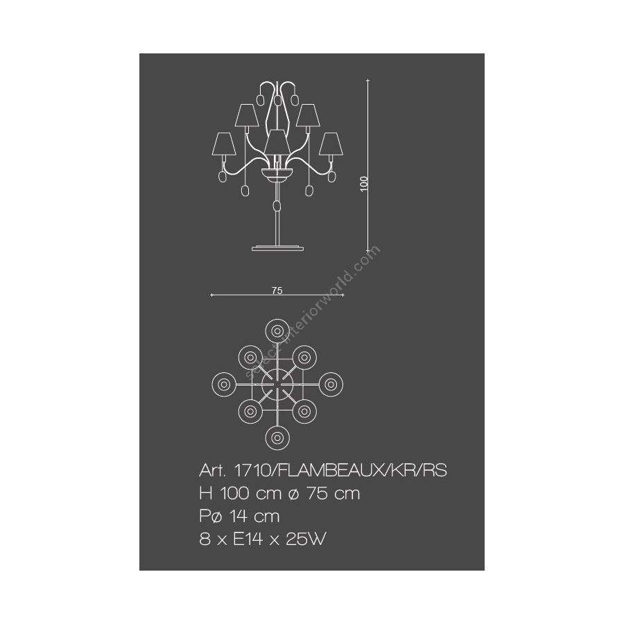 Bulbs: 8 x E14 x 25W| Dimensions (HxWxD): | cm: 100x75x14 / inches: 39.37"x29.53"x5.51" |