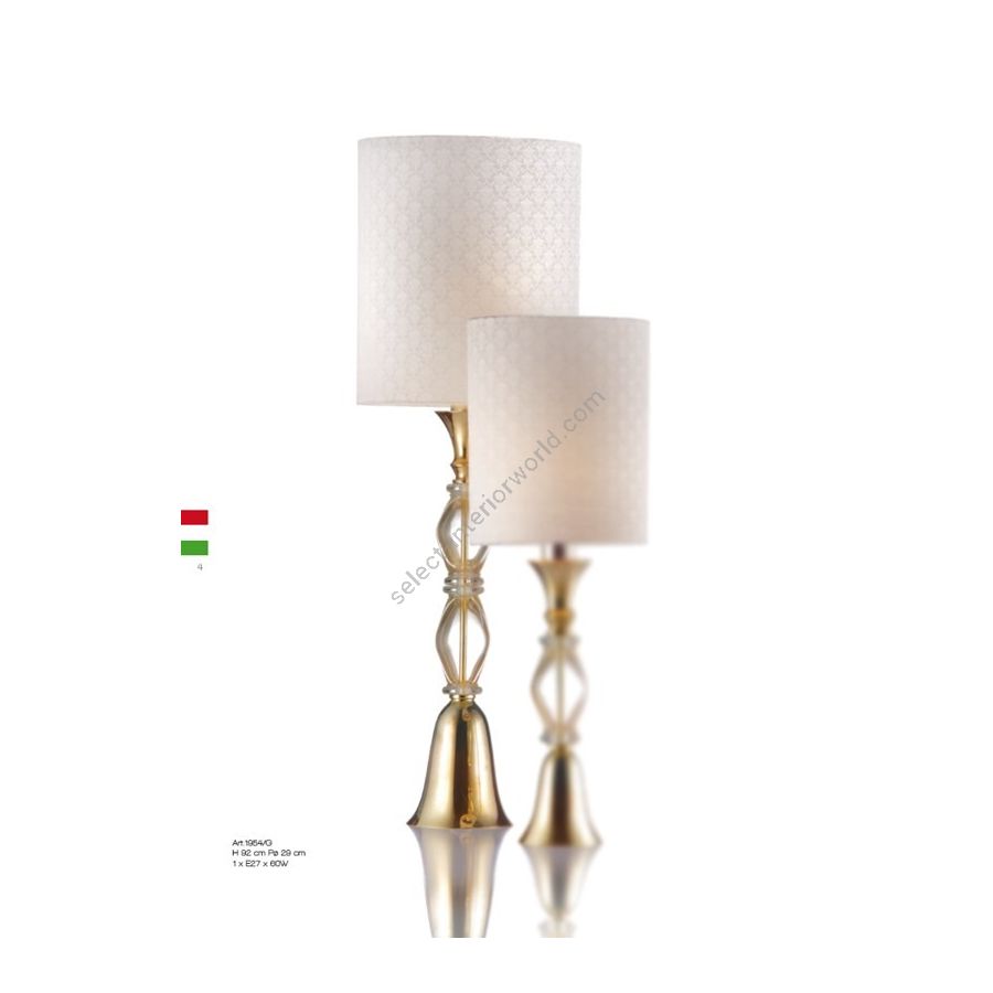 Table lamp in metal & Murano glass. Attention! The fabric in catalogue is out of production, to choose from possible options. Lighting item that diffuses the light with great effect in the surrounding environement creating a warm and welcoming atmosphere.