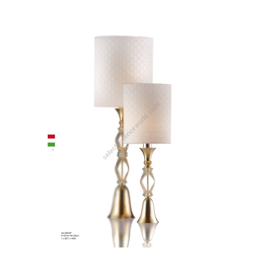 Table lamp in metal & Murano glass. Attention! The fabric in catalogue is out of production, to choose from possible options. Lighting item that diffuses the light with great effect in the surrounding environement creating a warm and welcoming atmosphere.
