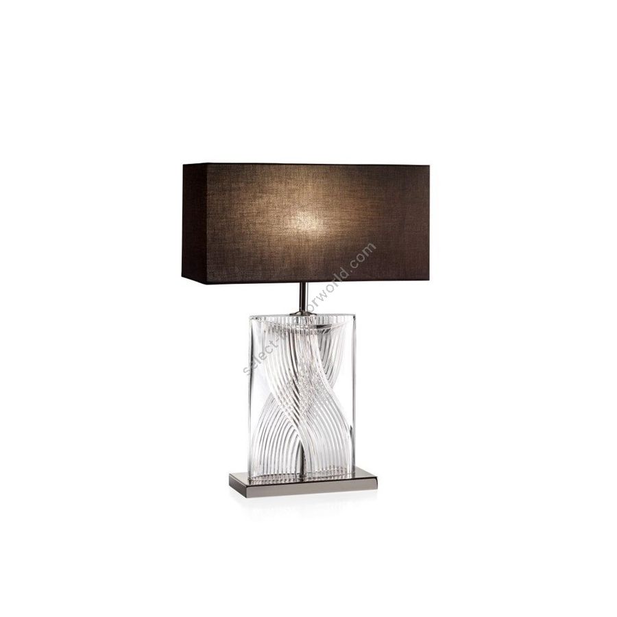 Table lamp in shiny clear Italian crystal cut by hand. Completed with rectangular black lampshade in fabric