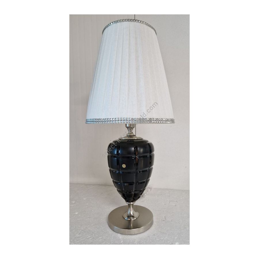Table lamp in black crystal and white silk lampshade that creates an elegant atmosphere.