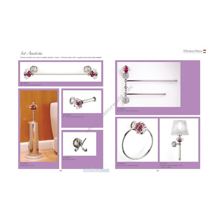 AMETISTA Towel holder in krome brass with italian crystal rose clamped by hand. Functional elements that create an extremely elegant, welcoming and high-value bathroom.