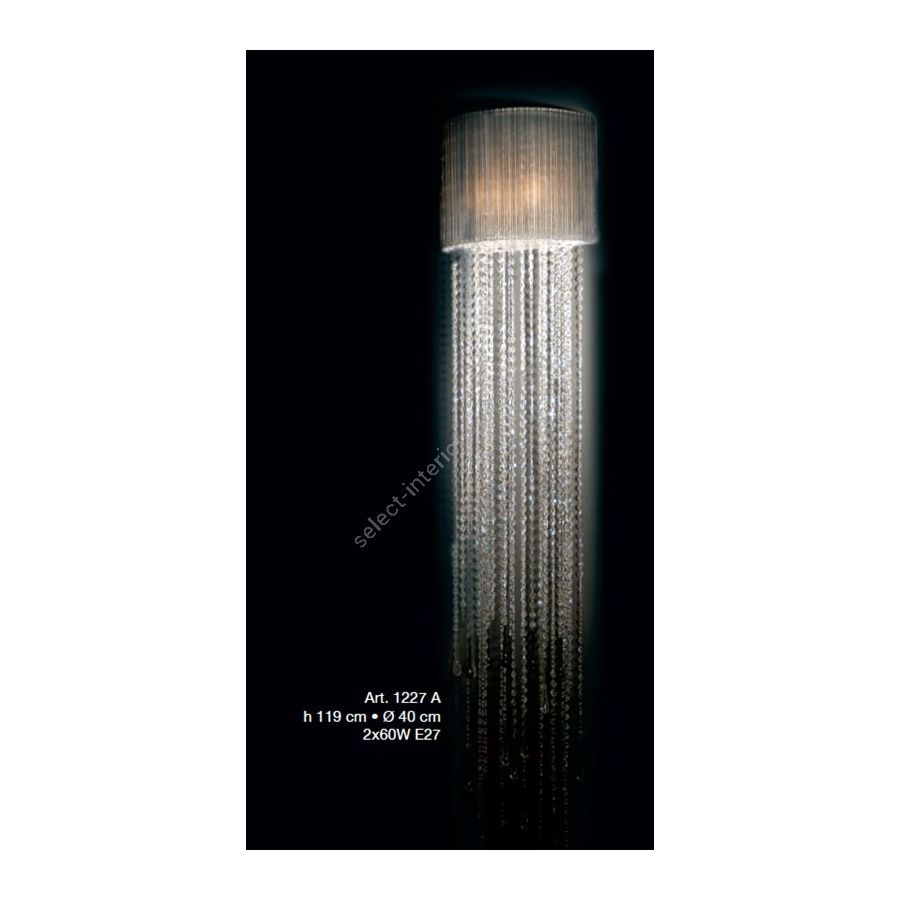 Wall lamp with lampshade and crystals. Lighting item that diffuses the light with great effect in the surrounding environement creating a warm and welcoming atmosphere.