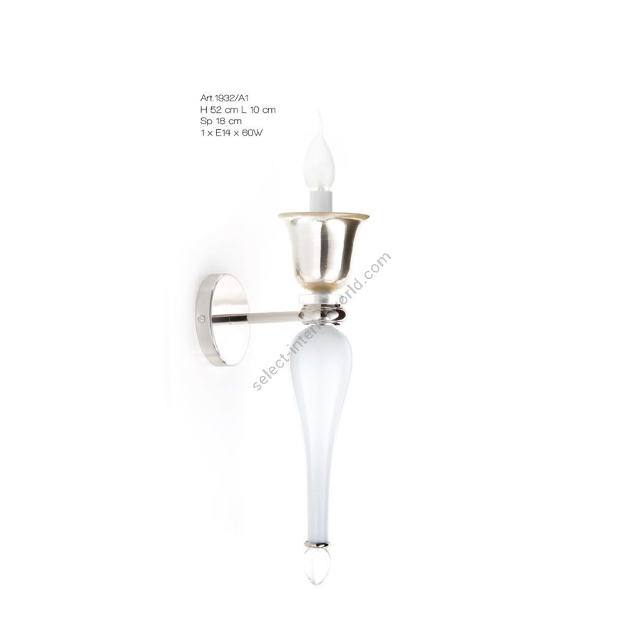 Wall lamp in Murano glass with mirror effect. Lighting item that diffuses the light with great effect in the surrounding environement creating a warm and welcoming atmosphere.