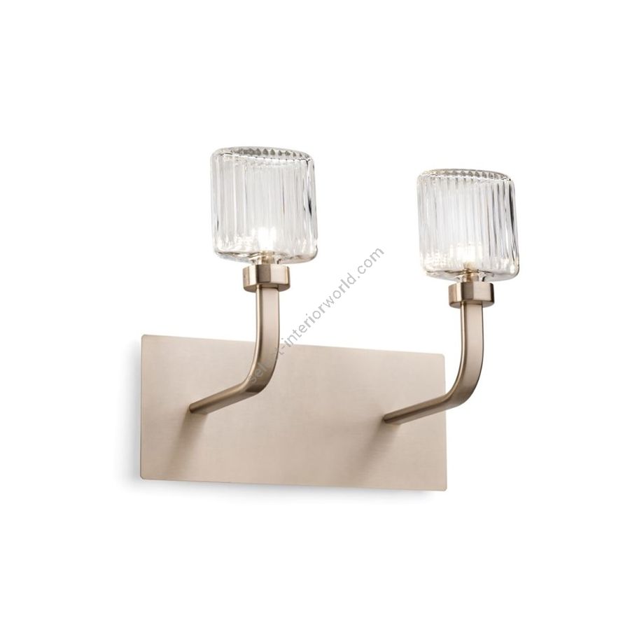 A two-light wall sconce with a contemporary and elegant touch combines modern design and functionality. Characterized by clean lines and refined materials, such as brushed metal, this lamp provides soft and welcoming illumination. The hand-cut Italian crystal cups add an extra touch of prestige, reflecting light in a refined way and creating a captivating luminous effect. Ideal for living rooms, hallways, or bedrooms, it adds a discreet elegance to any space.