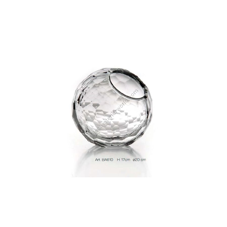 Italian hand-cutted polished fumè crystal jewellery glove sphere. Functional elements that create an extremely elegant, welcoming and high-value bathroom.