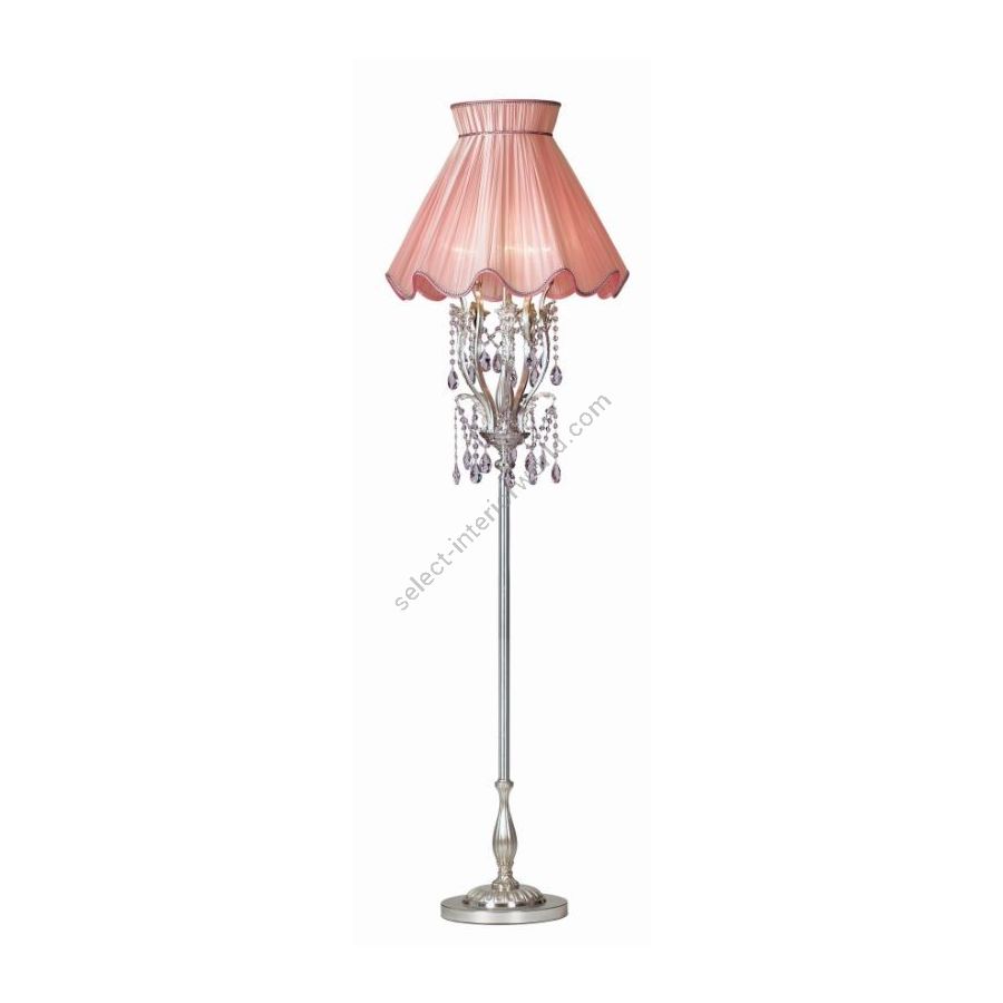 Floor lamp with double fabric lampshade and pink crystal pendants. Lighting item that diffuses the light with great effect in the surrounding environement creating a warm and welcoming atmosphere.