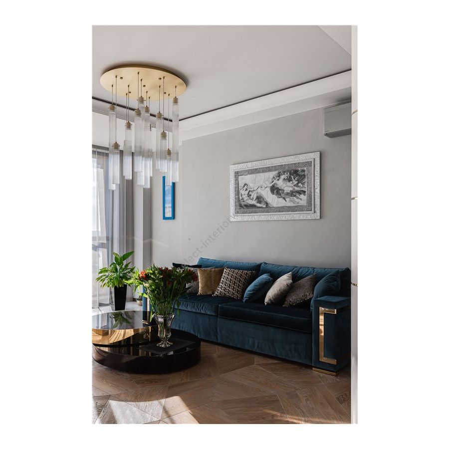 The Infinity chandelier is a very beloved ILFARI item. The classic, yet contemporary appearance of this conversation piece is due to its chic and elegant design, combined with luxurious materials and perfect finishing. A golden combination.