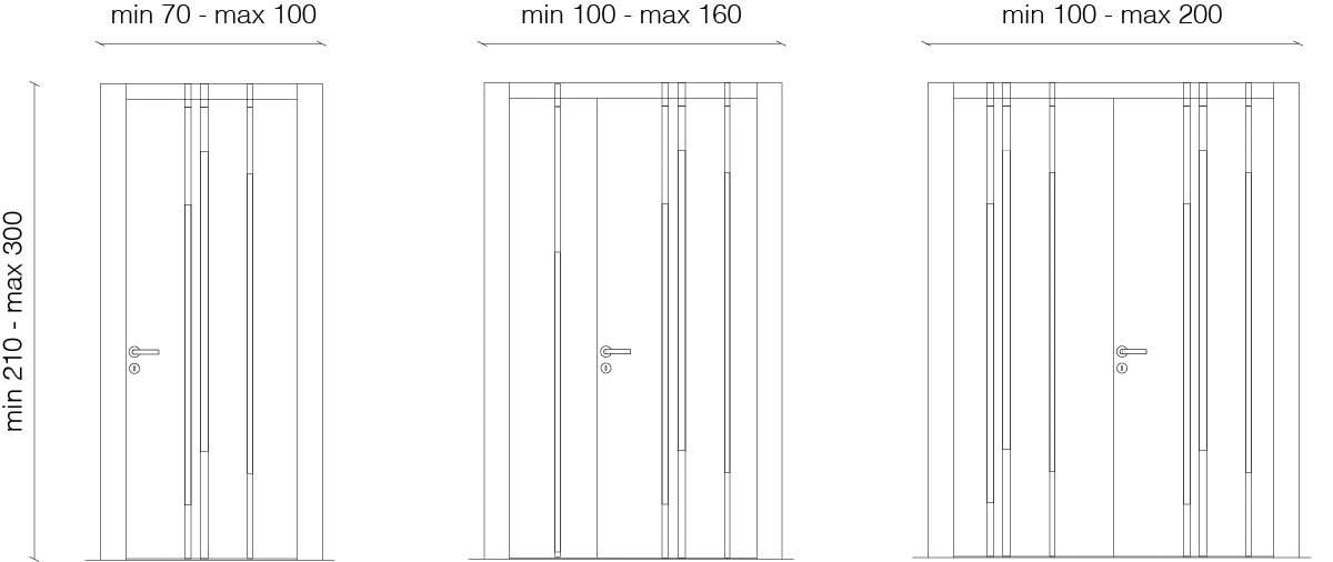 Available with customized dimensions, with 'Slim' jamb and integrated with boiserie systems. Panels, channels, and blocks customizable in matt lacquered wood in all RAL/NCS colours. Elliptical blocks also available in special finishes.
