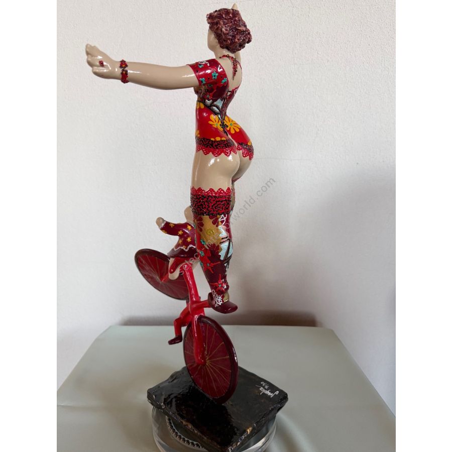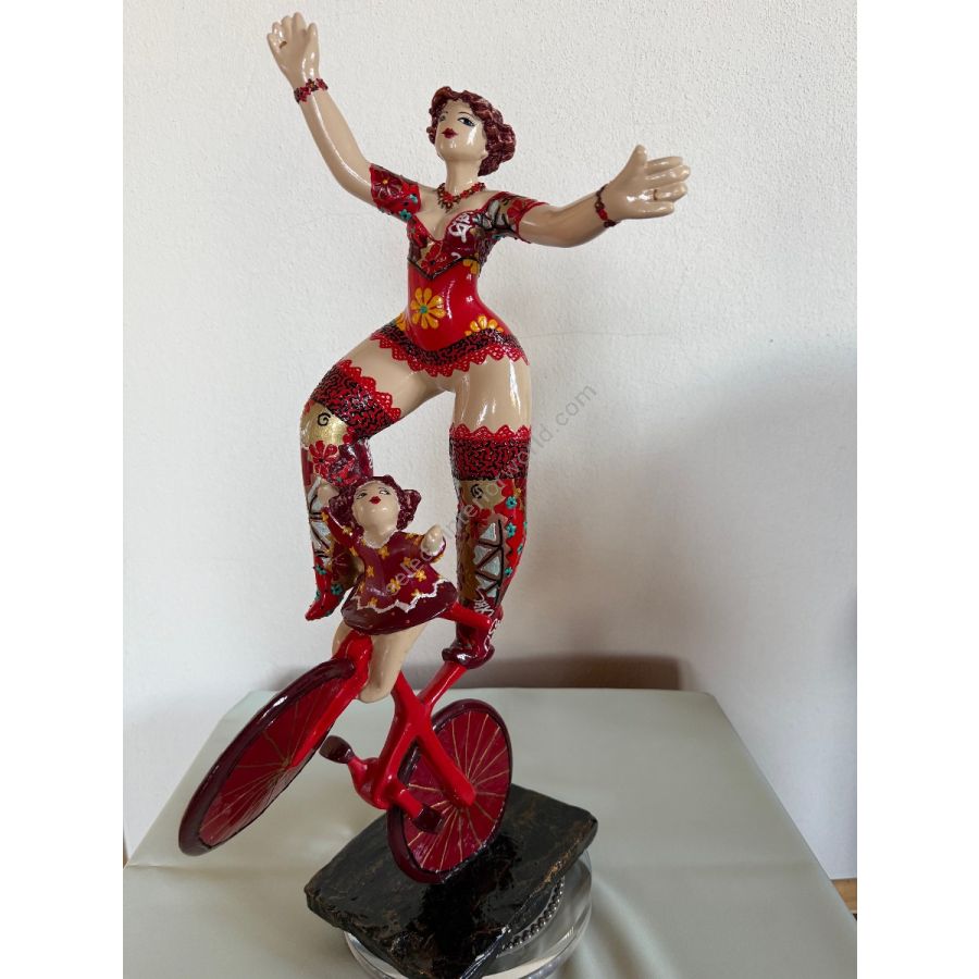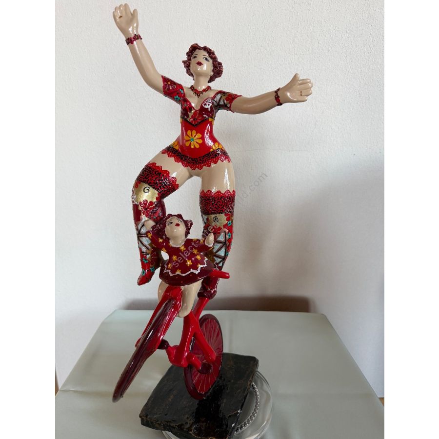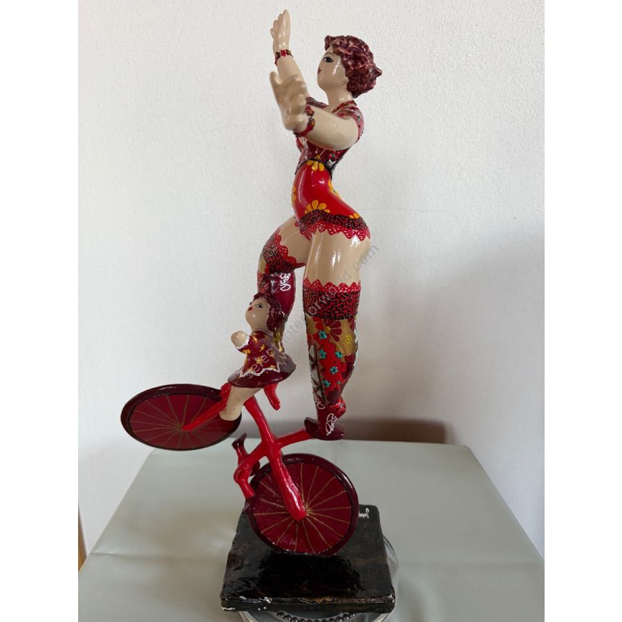Les Équilibristes is a vibrant sculptural work created in 2007 by the renowned French sculptor JOSEFA at her studio in France. The dynamic composition depicts a balancing female figure performing on a bicycle while accompanied by a child, capturing a joyful moment of movement, trust, and playful equilibrium.